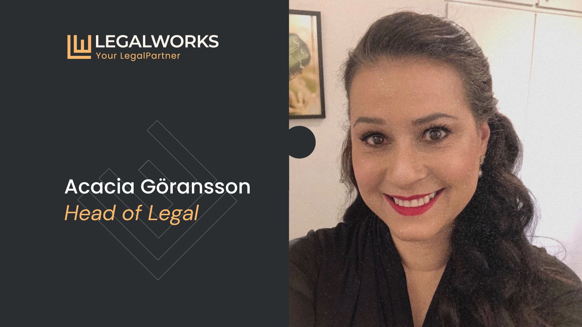 – Vi är mycket glada över att Acacia nu är en del av vårt team. Det är ett viktigt steg i vår fortsatta expansion och hennes erfarenhet av att bygga upp och leda juridiska funktioner kommer att vara avgörande när vi utvecklar vår plattform, vårt team och vårt kunderbjudande, säger Ulf Lindén, VD, Legal Works Nordic AB.